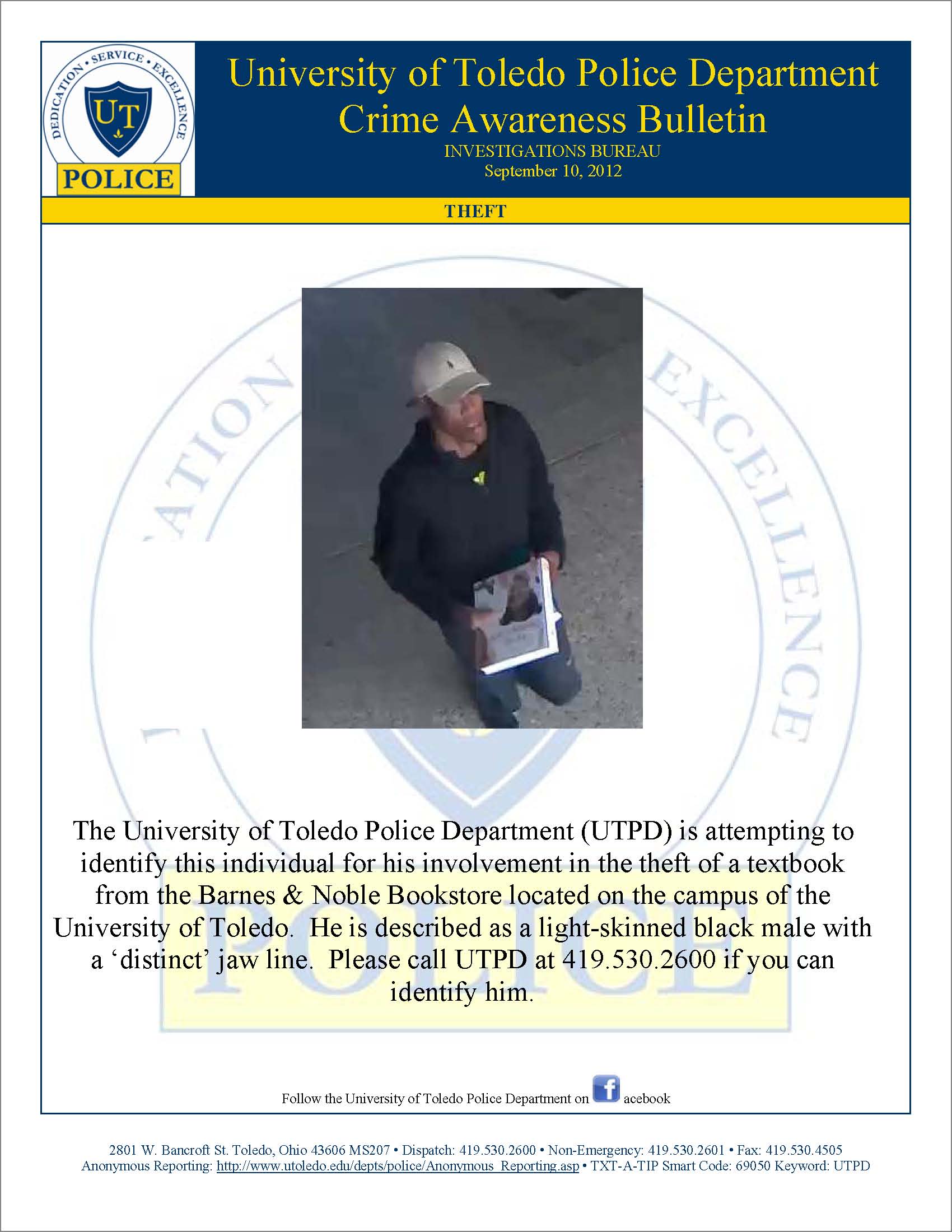 For immediate bulletins, follow UTPD on Facebook or Twitter to receive important bulletins; for Timely Warnings CLICK HERE