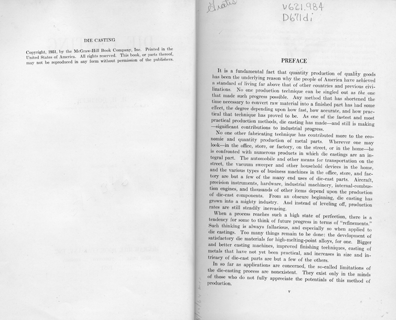 H. H. Doehler, Die Casting. New York: McGraw-Hill Book Company, Inc., 1951.