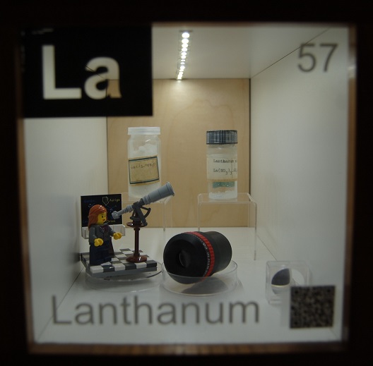 - An eyepiece from a telescope - Eyepieces similar to this one sometimes contain lanthanum in the glass. The lanthanum improves optical quality and the alkali resistance of glass.